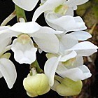 Rhynchostylis coelestis, often called the Blue Foxtail Orchid, is a charming and beautiful orchid species native to Southeast Asia, and is celebrated for its elegant flower spikes and sweet fragrance. This epiphytic orchid exhibits long, arching stems with fleshy, strap-like leaves. The flowers are small and densely packed. They have a blue hue. These orchids require bright, indirect light and excellent air circulation. Use a well-draining orchid mix and water regularly, allowing the roots to dry out between waterings. Their fragrant and showy flowers make them a prized addition to any orchid collection.